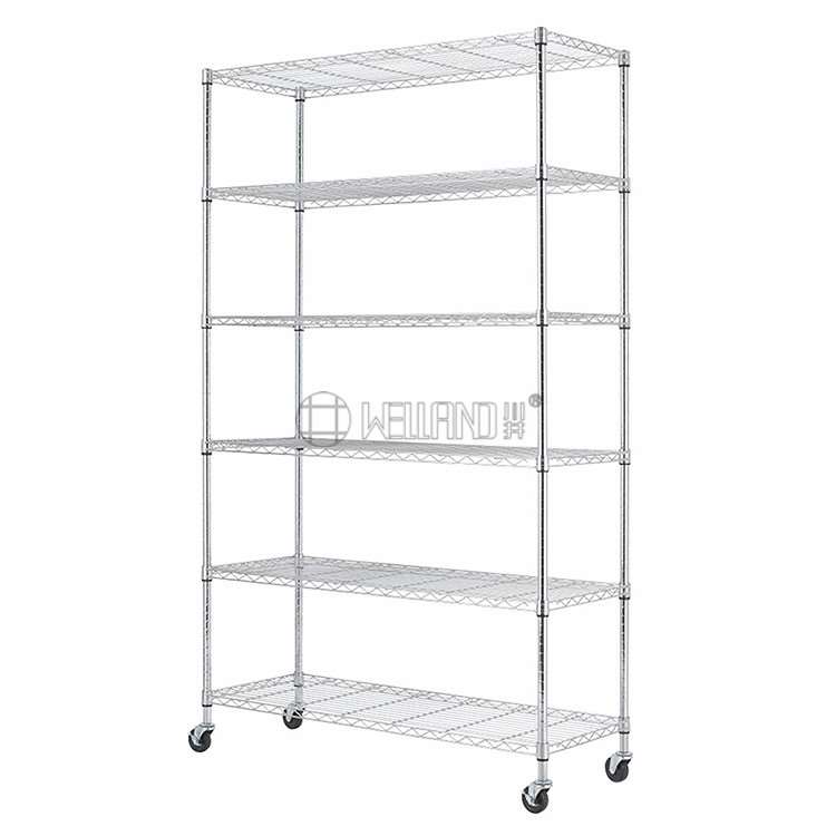 New Arrival Light Duty 6 Tier Layer Shelf Adjustable Chrome Wire Metal Shelving Rack with Wheels ,82"x48"x18",No Tools Required,every shelf can be adjustable.
