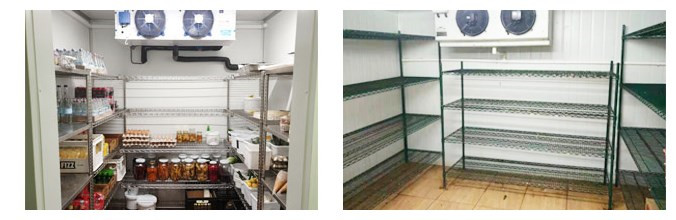 Cold room and wet environment, because of its environmental temperature changes in large factors, it has strict requirements to choose the storage wire shelving, including its material, rack structure, rust and surface finishes. That is in order to prevent products to rust. Usually for cold room shelves, they will put the frozen meat, vegetables and fruits,scientific reagents and other items, so it is necessary to have food-grade environmental surface treatment.