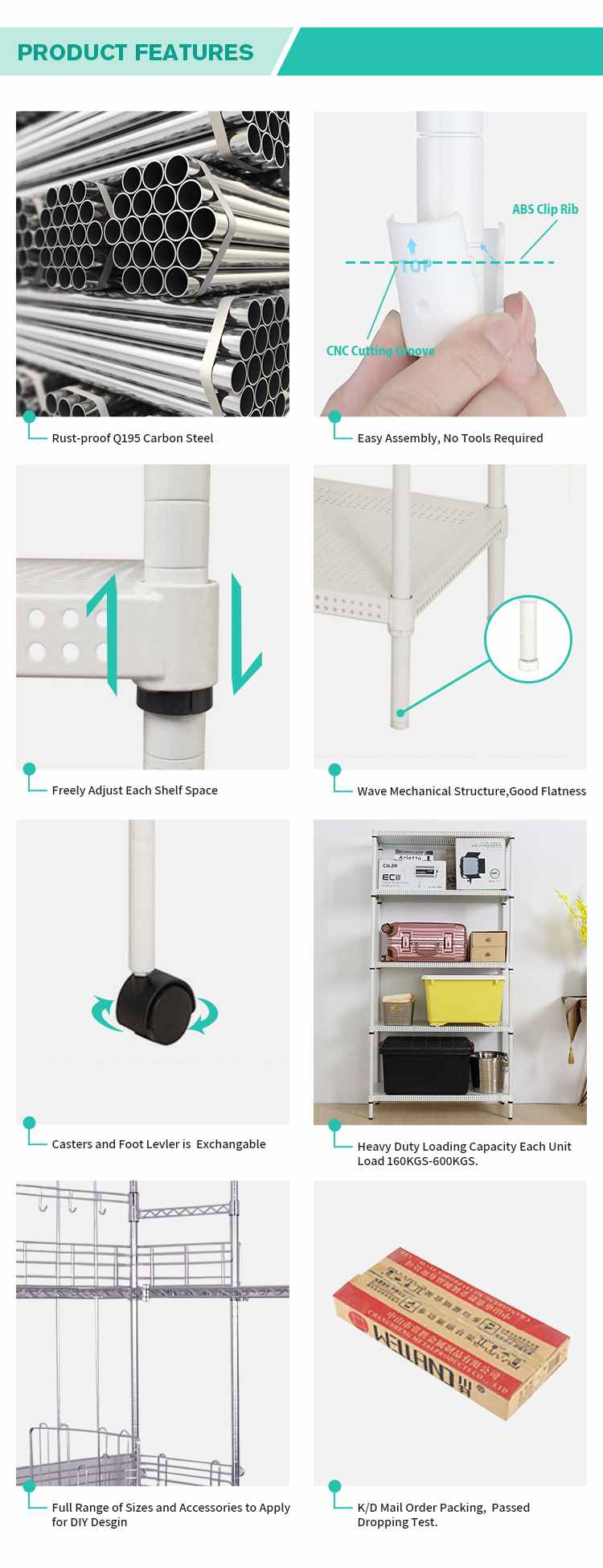 10)Loading Weight: | 50kg per shelf |