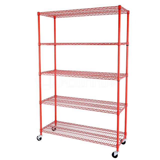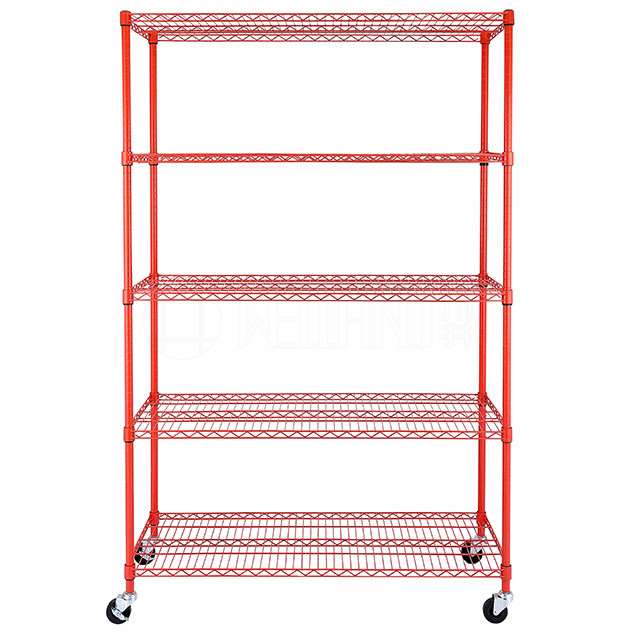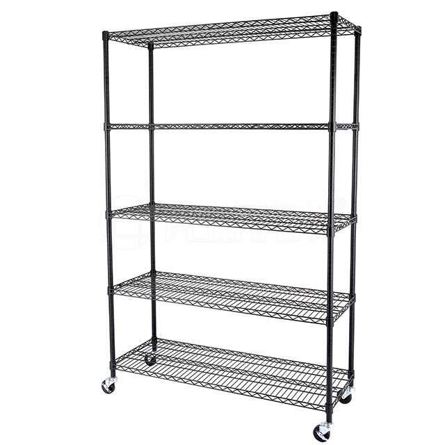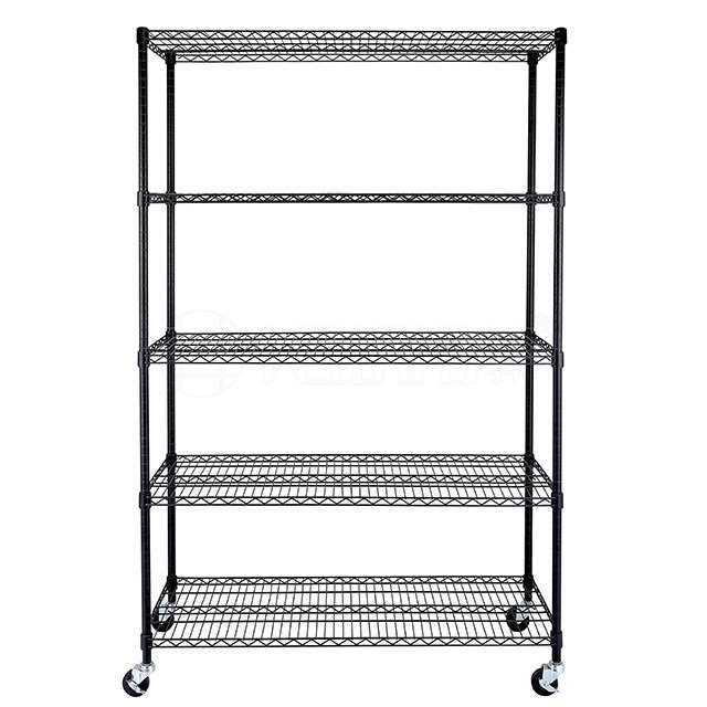 Heavy Duty Style 5 Tiers Chrome Wire Storage Shelving Racks with Wheels from China Wire Shelving Factory