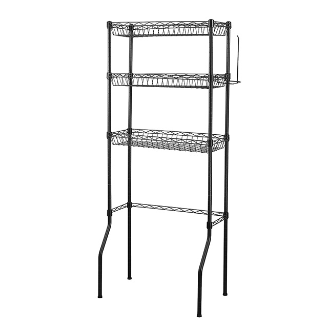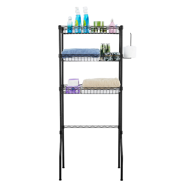 Freestanding 3-Tier Over The Toilet Storage Rack, Black Coated Wire Basket Storage Shelves, Multifunctional Bathroom Organizer Over Toilet Shelf