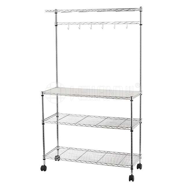 Amazon Top Seller Rolling Kitchen Bakers Microwave Oven Wire Storage Shelves,Wood MDF Board on Top