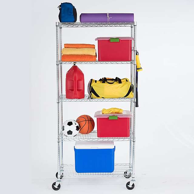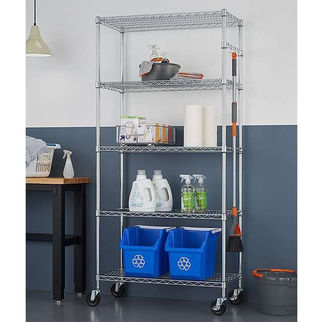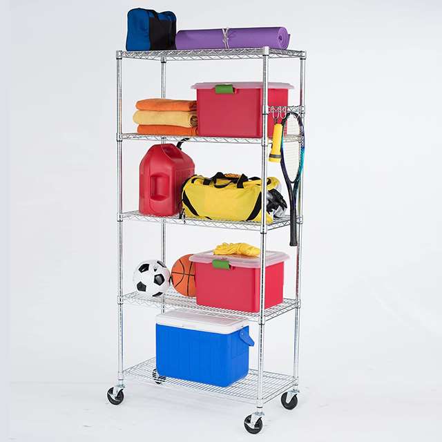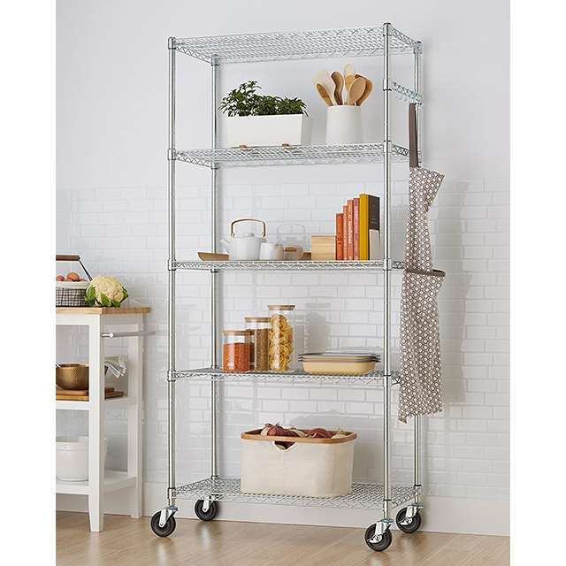 Multi-function 5 Tiers Heavy Duty 550lbs Chrome Metal Wire Shelf Rack,NSF Approval