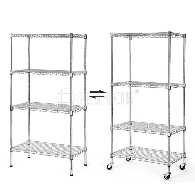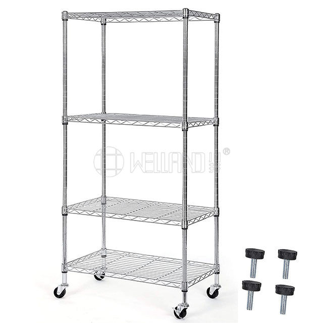 1) Article: | Rolling 4 Tier Household Storage Steel Wire Mesh Shelving, Light Duty Chrome Wire Shelf |