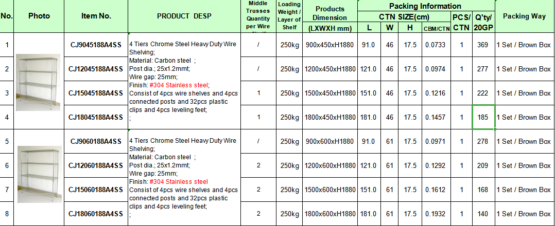 Our commercial wire shelf also can be used in cold room,for Asia and Middle East market, usually there are 8 hot sales cold room storage shelving,please check the attached