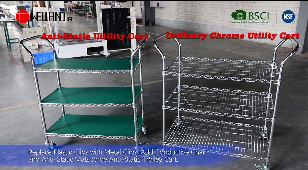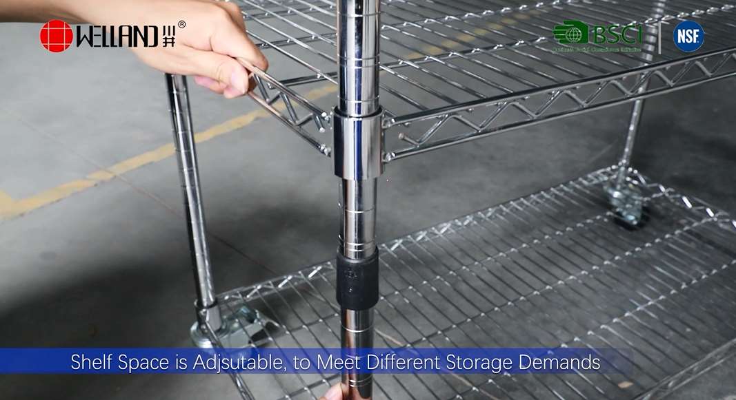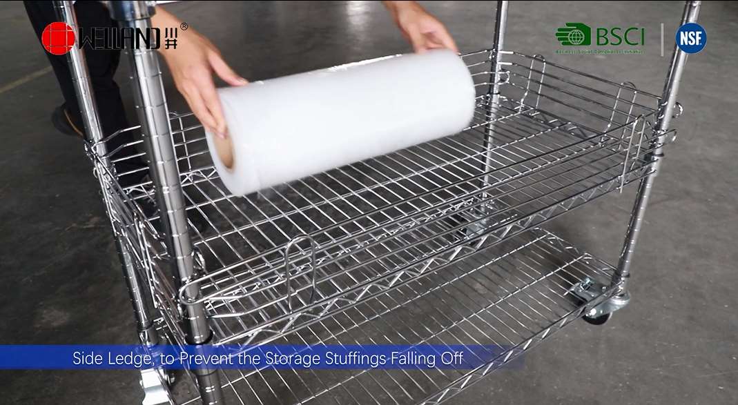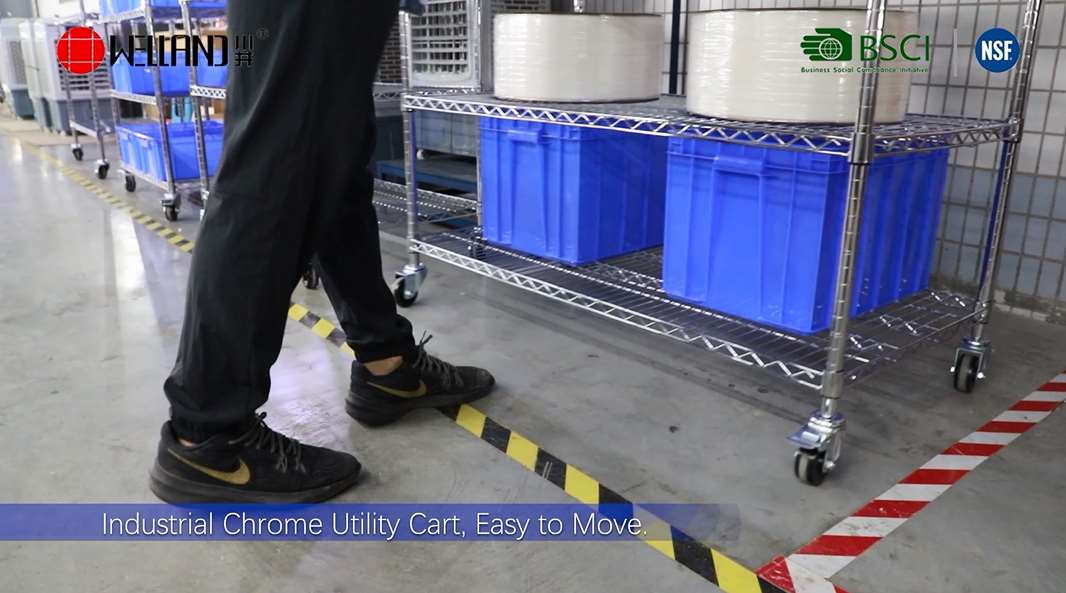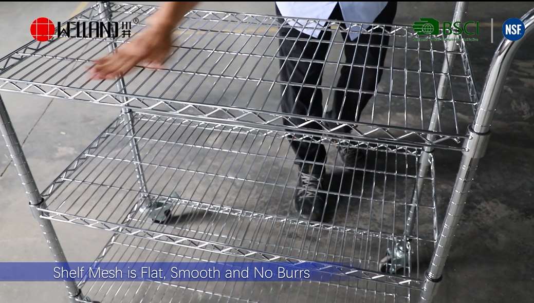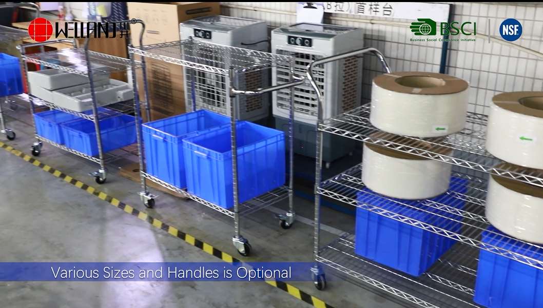 WELLAND industrial wire shelving cart, are hot sale in different commercial application, such factory, warehouse, commercial kitchen etc. We have various sizes and styles and handles for your choice.