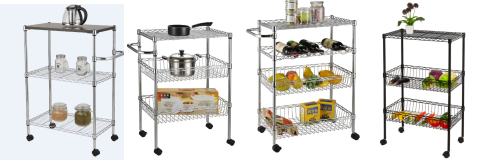 Usually most customers choice to do 3 tiers kitchen carts also called kitchen trolley.For the kitchen carts you can combine it with MDF board, wire shelf, and you also can combine it with wire baskets,wire shelf,wine racks and so on.