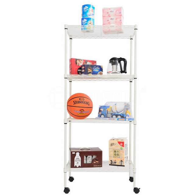 4 Tires White Wire Rack For Home Using. Loading Weight 40kgs Per Shelf. Hot Sales For Many Countries.