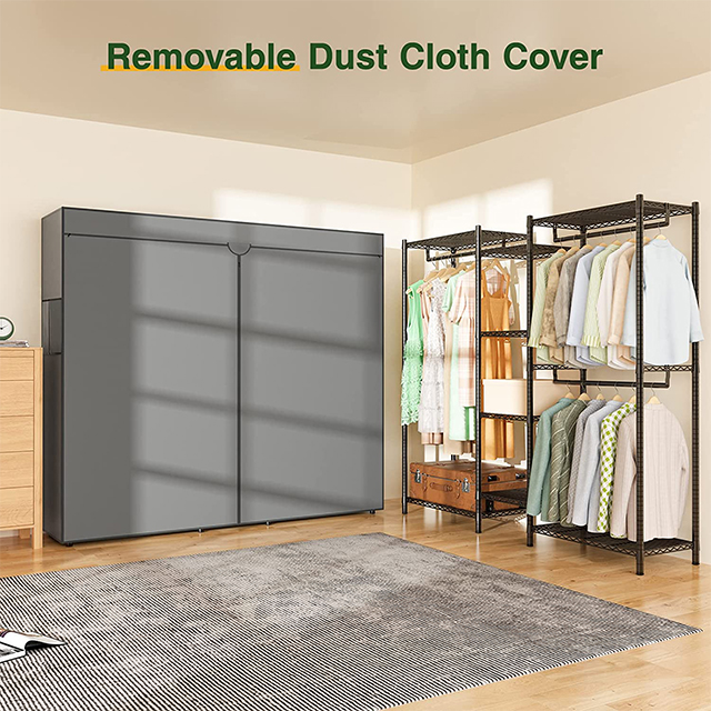 Heavy Duty Clothes Rack with Cover, Wire Garment Rack for Hanging Clothes, Compact Closet Storage Clothing Rack with Gray Oxford Fabric Cover