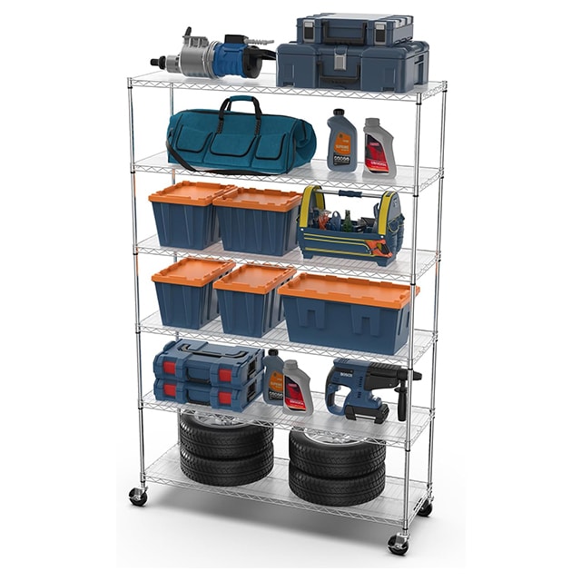 Heavy Duty Wire Shelving Cart, Adjustable Metal Rack with Wheel, Chrome