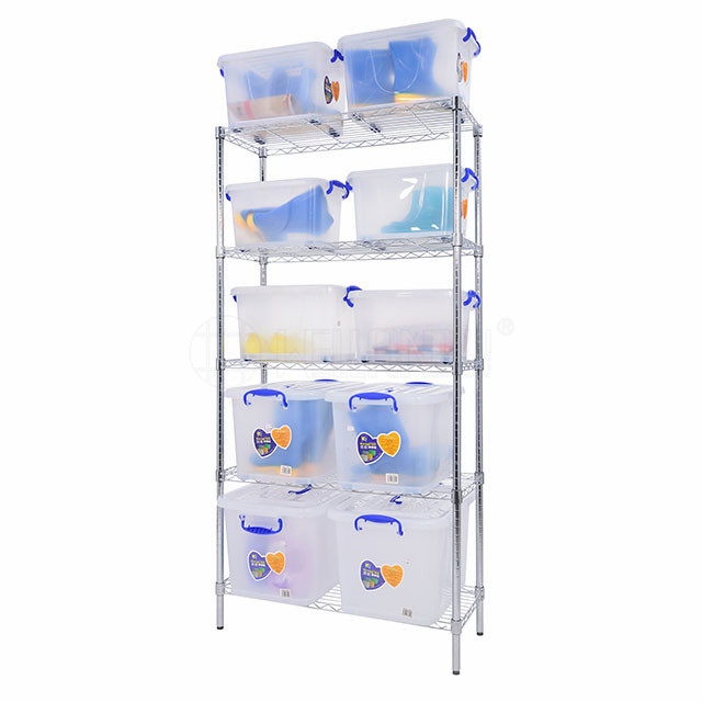 Household Storage Organizer 5 Tiers Chrome Metal Wire Shelf Shelving, loading capacity 120kg per shelf,hot sale for more than 60 countries.