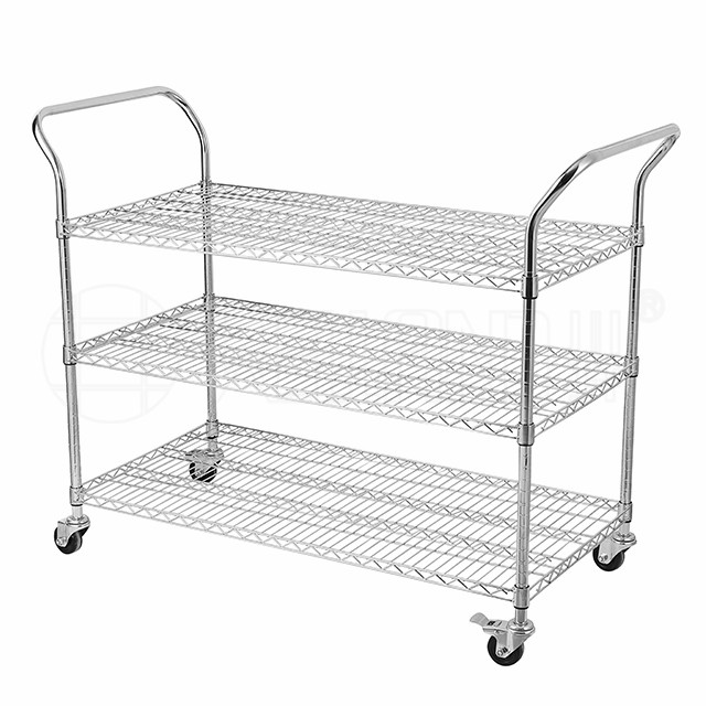 Commercial Grade Heavy Duty Style 3 Tiers Chrome Wire Shelving Utility Cart,Each Shelf Can Be Adjustable,Durable&Movable