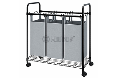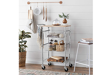 3-Tier Metal Basket Rolling Cart with Wood Top